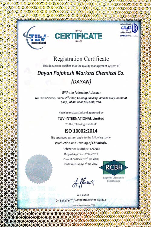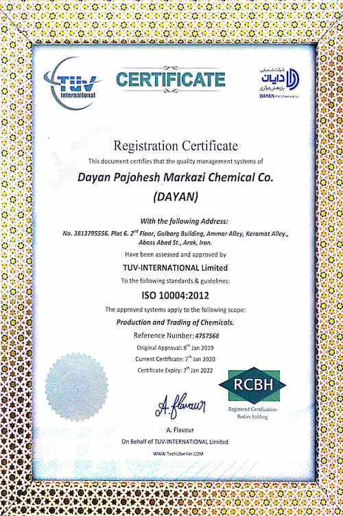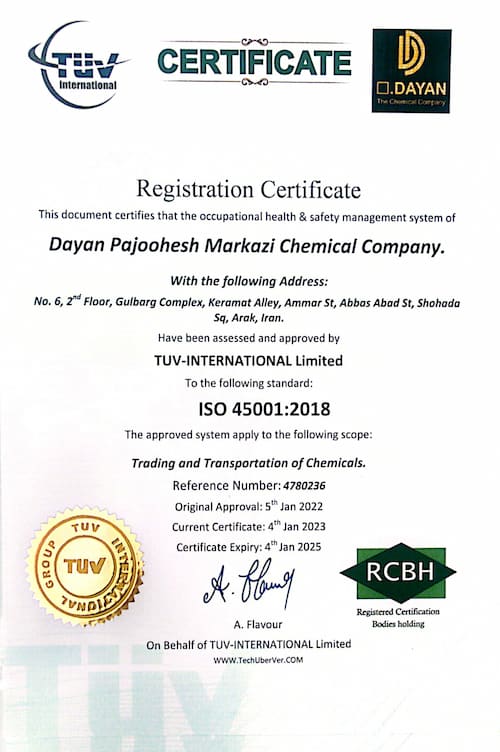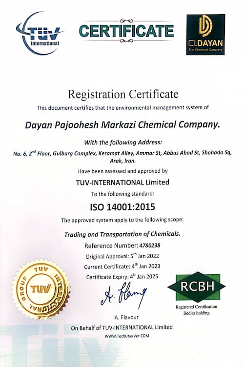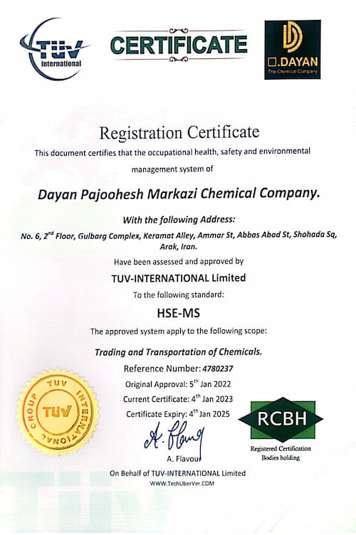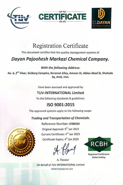 تامین و صادرات و واردات اسید کلریدیرک و سولفوریکشرکت " شیمیایی دایان پژوهش مرکزی" که در سال 1393 به صورت سهامی خاص دراستان مرکزی شهرستان اراک تاسیس گردیده و با بیش از چهار سال فعالیت مستمر و پویا ،هم اکنون در زمره شرکتهای برتر در زمینه تامین و صادرات و واردات اسید کلریدیرک و سولفوریک کشور شناخته می شود .